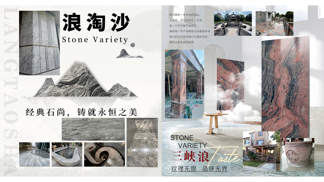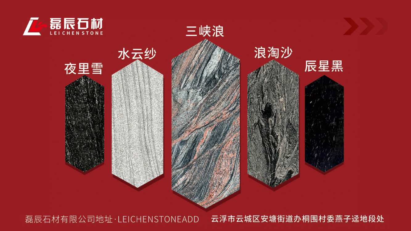 我们的产品包括三峡浪、浪淘沙、水云纱、夜里雪、辰星黑辰星灰等多个系列,广泛应用于建筑外墙、地面、台面、家具装饰等领域。磊辰石材以精湛的工艺和严格的质量控制体系,赢得了客户的信赖与好评。
